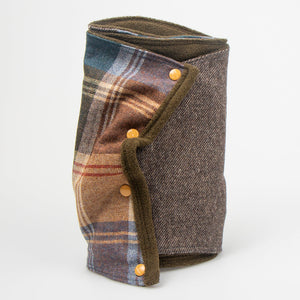 Your one-of-a-kind Chinook will turn heads as you walk down the street or hit your favorite ski slope. The outer layer is made from upcycled wool suit coats or shirts and is lined with super soft wool-faced Polartec fabric. Stay warm in cool weather with the multiple snapping configurations to bundle up, fold down, and express your own style.