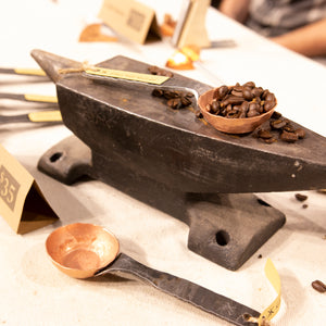 This heirloom quality hand-forged coffee scoop is made from food-grade copper and mild steel. The scoop holds 1.5 TBS of coffee beans or grounds. Designed and forged in Missoula, MT, it is intentionally rustic and one-of-a-kind.