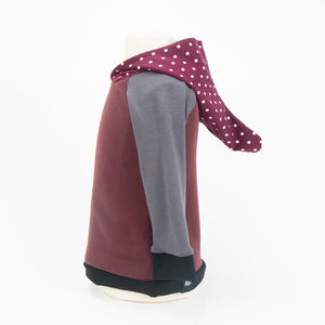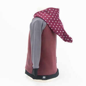 It's the go-to hoody for both lads and lasses. This pullover Elf Hoodie features a lined, pointy hood and contrasting sleeve cuffs. A generous fit allows the hoody to be worn more extended before it is outgrown and passed on. Your little one will stand out in the crowd. Made in Montana from upcycled deadstock fabric, this hoodie blends sustainability with style. If you are looking for older sizing, check out the Joey Hoodie!