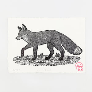 Print of a red fox. Foxes are cunning and beautiful creatures.