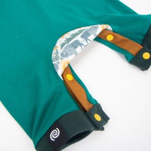 Say hello to your new baby essential! These adorable short-all rompers are a must-have, featuring lapped shoulders, a cozy crew neck, a contrasting butt gusset, and easy-to-use resin snap closures for quick changes. Available in playful unisex and girl-friendly color combos, they're guaranteed to steal the show at your next family gathering. Crafted in small, exclusive batches (think microbrewery vibes!) from upcycled deadstock fabric, they're as sustainable as they are stylish.