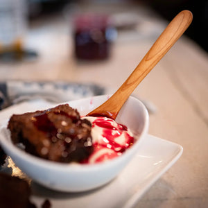 The Earlywood toddler spoon provides older babies and toddlers with the perfect wood-feeding spoon to learn with. This non-toxic wooden spoon handle is large and rounded, ideal for small hands to grasp. These unique spoons can be custom engraved in one of three fonts. No little ones at home? These small wood spoons are perfect for desserts, chia pudding, salt, and sauces.