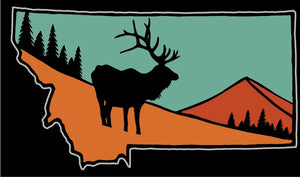 The American Elk, or "wapiti" as we like to call it is massive and majestic ungulate here in the Rockies! The design name "Wapitana" comes from the combination of the words Wapiti and Montana. This design captures this iconic beast on a hillside park, thinking about what? Good forage? Cows? Herd safety? The ubiquity of the nanoplex? It's hard to say. Regardless, the design was hand-cut by Andy Smetanka, and hand screen printed in Montana, USA on all-cotton, soft vintage black Canvas and Bella tee shirts.