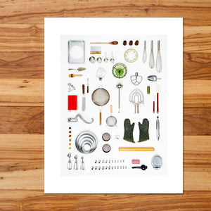 All the shiny gadgets and tools make a dream kitchen in the Baker print.  Perfect inspiration for your inner pastry chef or a lovely gift for a foodie you know.