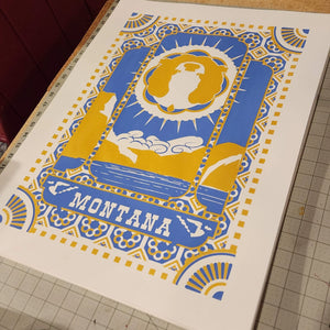 A limited-edition poster print with a handcrafted, halftone aesthetic—designed and screenprint out of the Goodson Designs' home studio in Helena, Montana. The prints feature ornate designs with a Western subject matter and a unique vision of what makes Montana Big Sky Country.