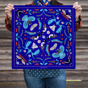 Inspired by the flora and fauna that thrive in Glacier National Park, this bandana serves as your field guide for wildlife surrounding Avalanche Lake.