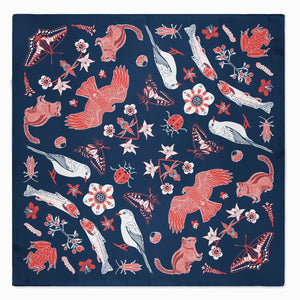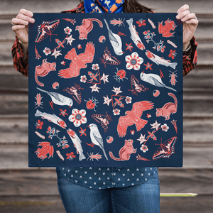 This bandana features flora and fauna from Hyalite Canyon, Bozeman, Montana, and is the perfect keepsake for the nature enthusiast. This bandana was inspired by scientific illustrations and field guidebooks.