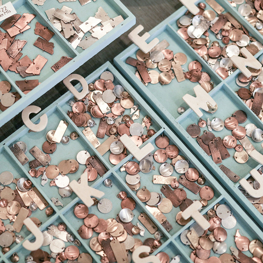 Hattie + Rex creates beautiful, handmade personalized jewelry and pet ID tags. All charms, rings, earrings, and bracelets are handmade from copper, brass, and sterling or nickel silver. More than 100 designs are available to customize. We also offer appointments for Everlasting Bracelets and Necklaces in a variety of 14-karat gold, rose gold, and sterling silver chains. Our unique pet ID tags are the perfect way to celebrate the adoption of a new pet and come with a lifetime guarantee. And our human jewelry is designed to commemorate various special occasions for men, women, and kiddos.