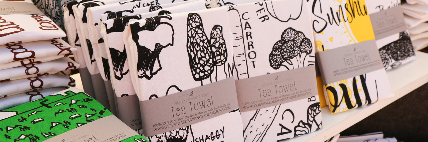 Corvidae began with a few wrapping paper designs and has quickly grown to include other products, including hand pulled screen printed tea towels. Each product features one of Kim's original designs.