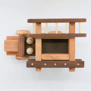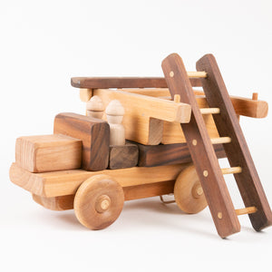 This handmade wood toy Fire Engine comes with two firemen and two removable ladders. It is constructed of walnut and maple, with a natural non-toxic oil finish.