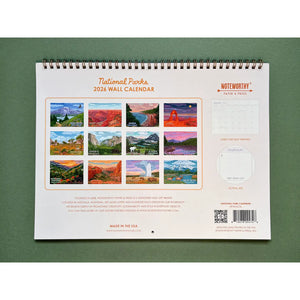 This calendar features 12 scenic views of the top visited US National Parks including- Mount Rainier, Grand Canyon, Acadia, Arches, Joshua Tree, Yosemite, Glacier, Rocky Mountain, Great Smoky Mountains, Zion, Yellowstone and Grand Teton National Parks. Size is 12" x 9" flat, 12" x 18" open. Printed on 70 pt uncoated paper. Hanging hole and antique gold wire binding. Made in the USA.
