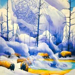 An old, giant bison protects the herds roaming in Yellowstone National Park. Respect the locals who reside here. Part of a collection exploring the mystical creatures that could be living in our national parks.