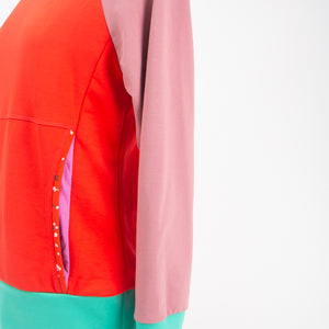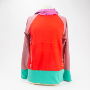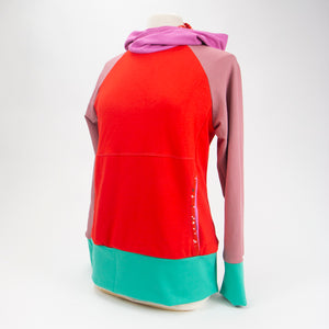 The Ella Roo offers you both convenience and style. With a kangaroo pocket on the front princess seams and a spacious hoodie design, you can keep your essentials close while you look your best. This stylish and comfortable layer has been updated with unique details like a raglan cut, banded waist, and cowl-inspired hood, making it an essential piece for any wardrobe. Plus, the inside of its hood has a complementary print, and the color palettes ensure you stand out. Best of all, it's crafted from upcycled deadstock fabric, helping to reduce the fashion industry's waste. If you like this style, check out the Joeyhoodie for kiddos.